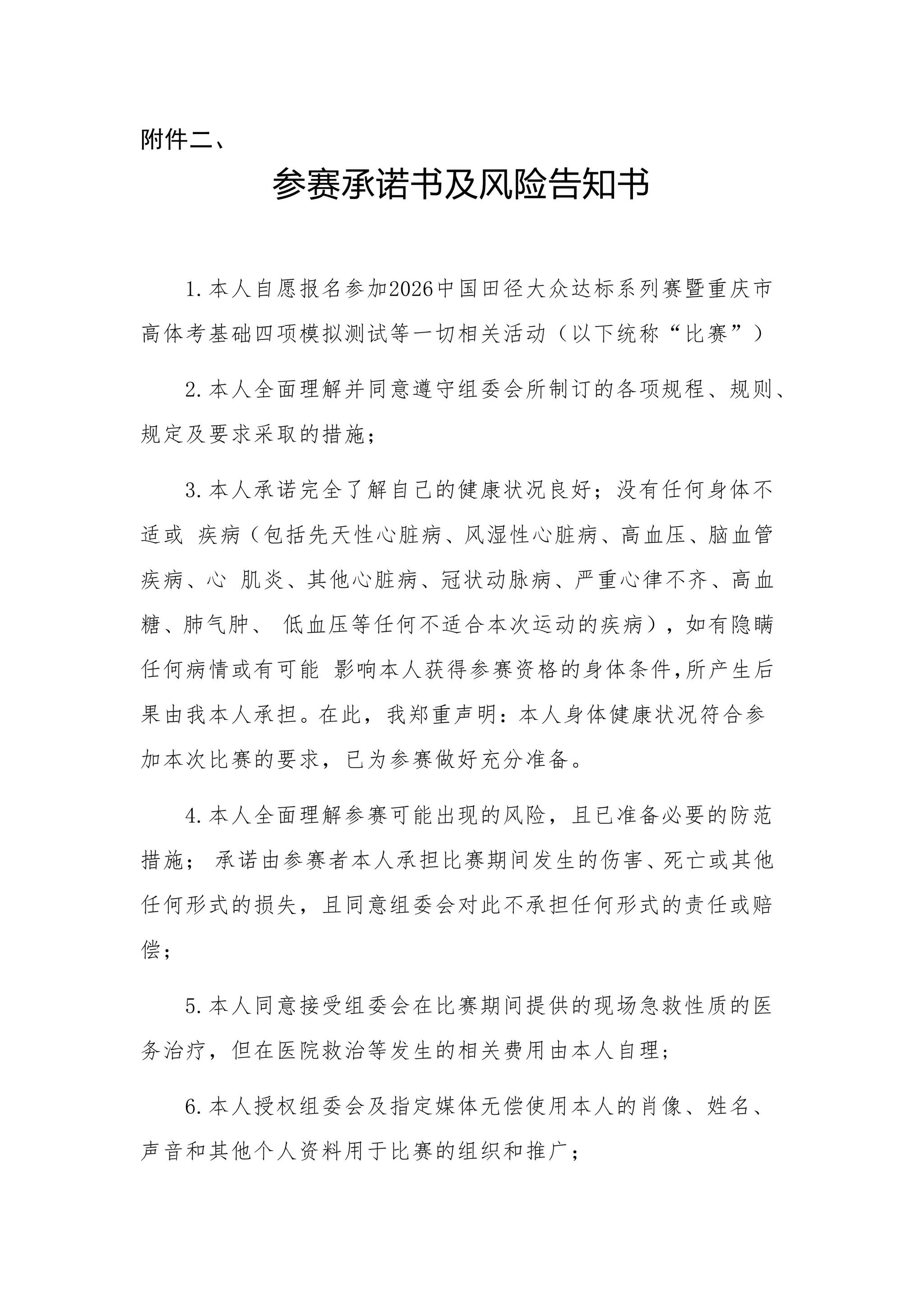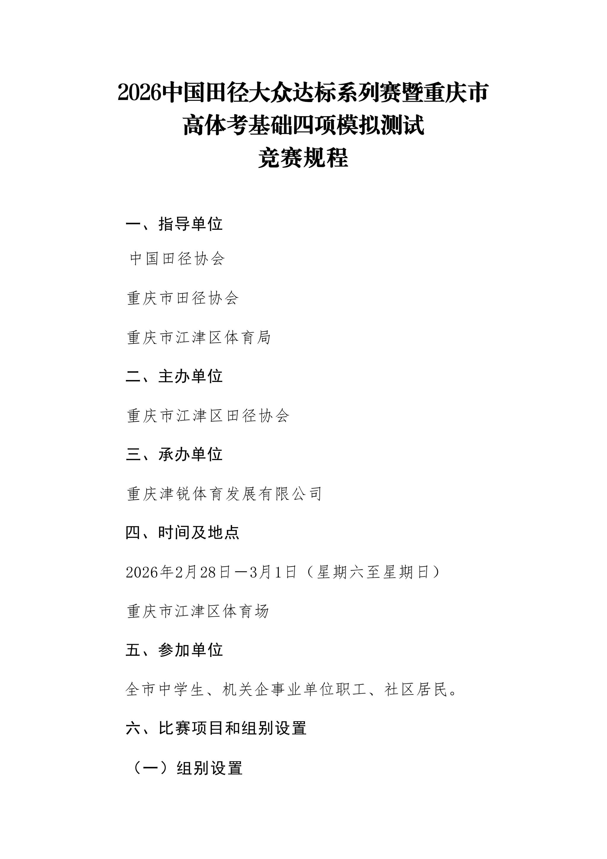 2026中国田径大众达标系列赛暨重庆市高体考基础四项模拟测试竞赛规程